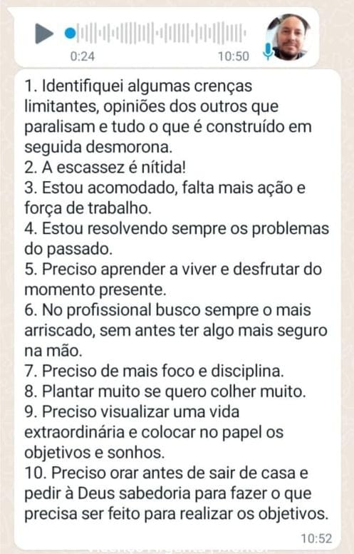 A partir do momento que você começa a perceber todas essas coisas que o compõe e do que há dentro de você, tem a chance de mudar o seu comportamento e a forma como pensa sobre as situações, a partir disso conseguirá fazer escolhas que irão facilitar as suas conquistas.