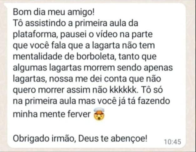 Entre no programa que tem tornado pessoas inseguras e sem nenhuma perspectiva profissional em conquistadores, eles tem aprendido a identificar e compreender suas inseguranças e estão dominando seus posicionamentos, decidindo e executando de modo assertivo os seus planejamentos.